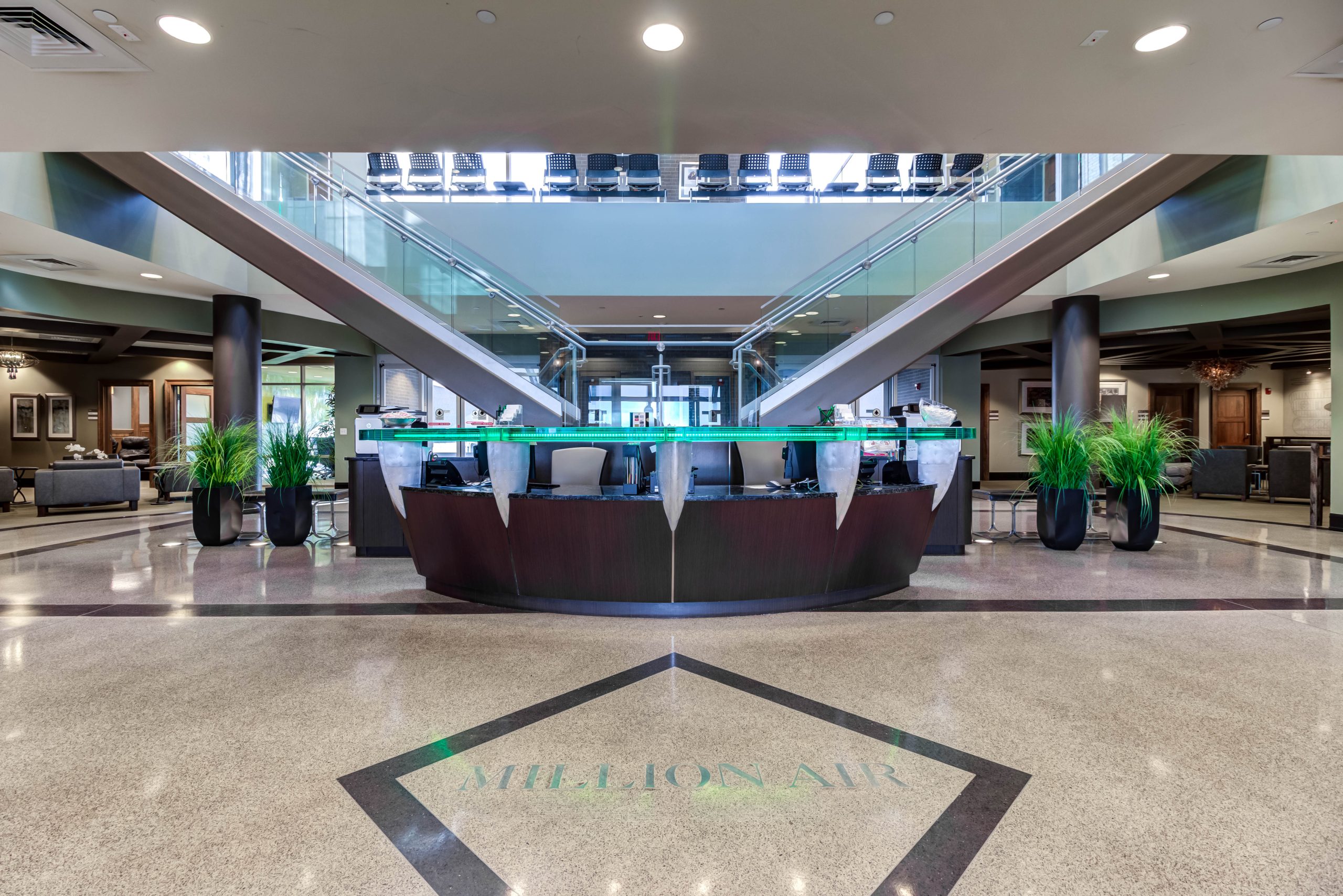 Million Air Stennis is Mississippi’s luxury FBO at Stennis International Airport in Bay St. Louis. Our large ramp areas can serve multiple assortment types of aircraft from helicopter operations to military deployments and training exercises. We can simultaneously handle and park aircraft from Cessna 150s to C-5s, DC-10s, L1011s, T-38’s, C-17s and the larger Antonov aircraft. Our Line Service Professionals are NATA Safety 1st Certified and our Customer Service Professionals are ready to assist with hotel, transportation, and catering accommodations. Enjoy breakfast, lunch, or dinner overlooking the airport and airport operations in the Jet-A-Way Café sky lounge, conveniently located on the second floor of the FBO terminal.