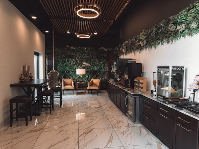 • Hospitality bar with homemade cookies, fresh popcorn, Stubborn draft soda, and Starbucks coffee